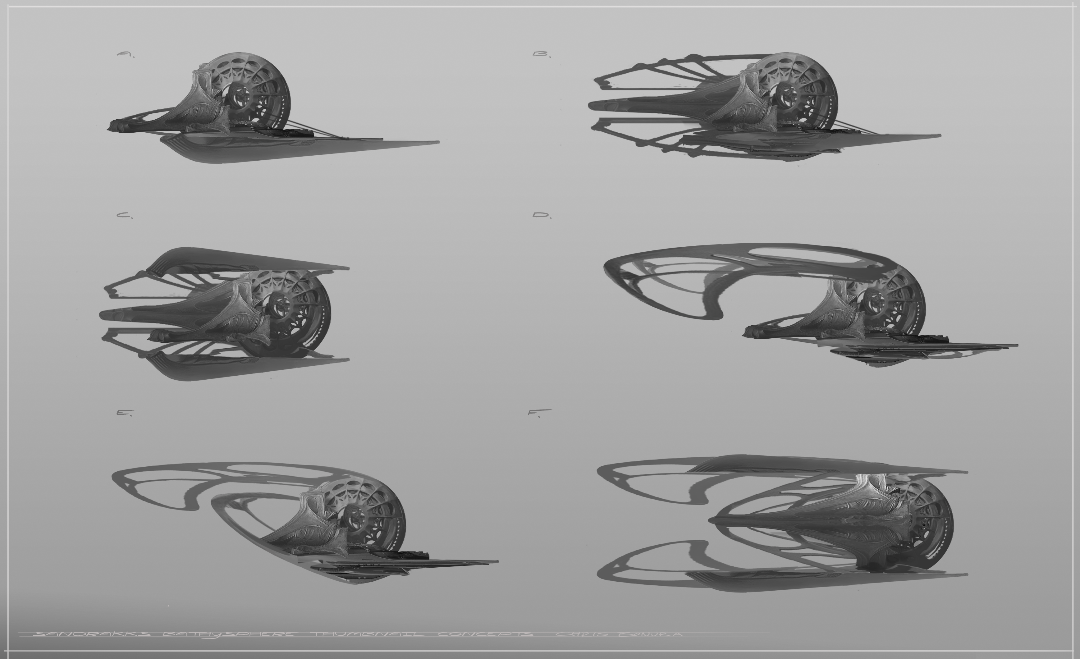 These are the thumbnails that led up to the final design for Sandrakk's ship design in EA's "Immortals of Aveum". Such a fun project coming up with fantasy tech. As a concept artist this was a dream to world build in a genre that hasn't been seen before! I looked at allot of art nouveau designs from the late 1800's to help inform this.