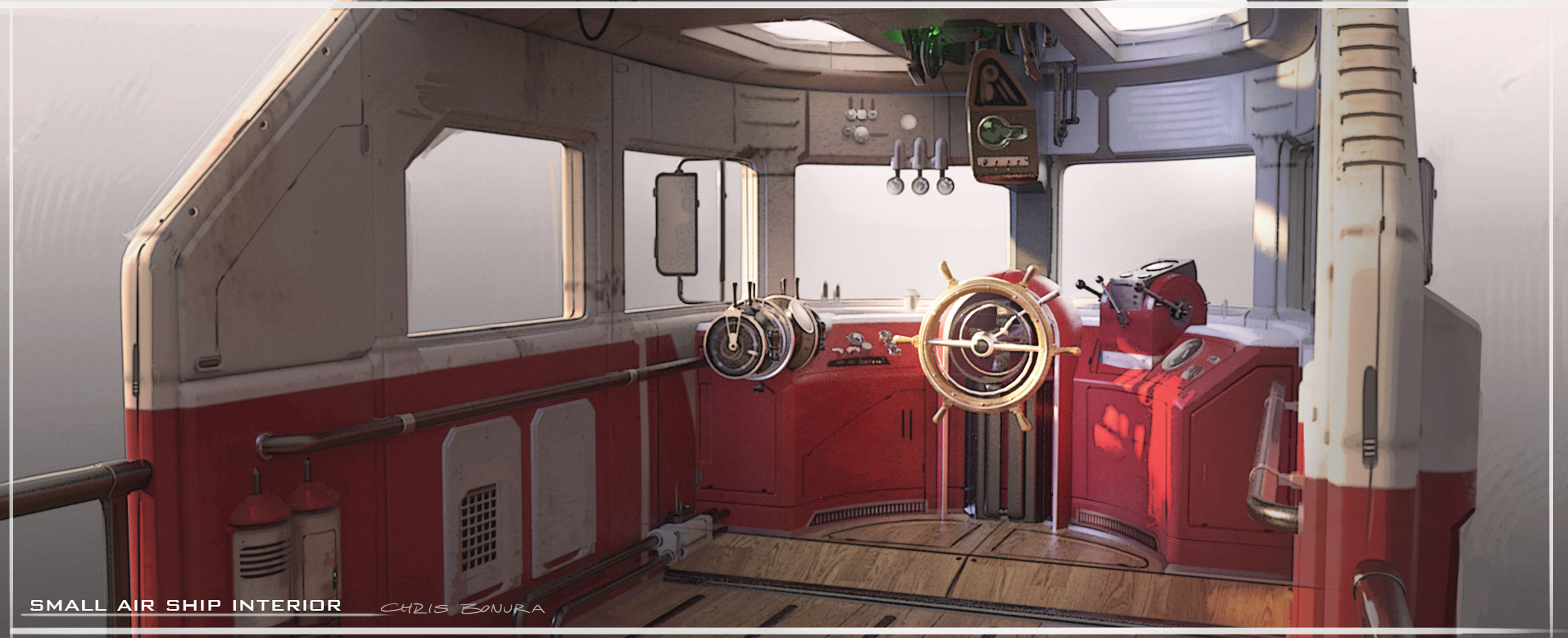 Initially the idea was to come up with a fighter pilot type cockpit in our design language for Sandrakk's ship. It eventually was scaled up and simplified so we had more room and flexibility for camera angles. This is where we landed for the in game design!